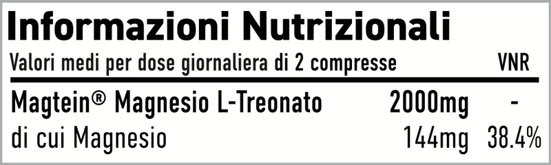 Tabella Nutrizionale di Magtein® - Puro Magnesio Treonato in compresse: